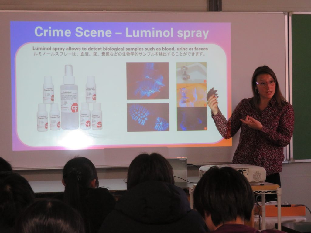 令和7年12月19日(金)に日本学術振興会主催のサイエンス・ダイアログを開催しました。京都大学化学研究所のMarine LABRO先生とWANG YUTANG先生から、光化学が実際の生活の中でどのように活用されているかについてお話を聞いた後、その1つの例として犯罪現場で使用されているルミノールの発光実験を体験しました。
