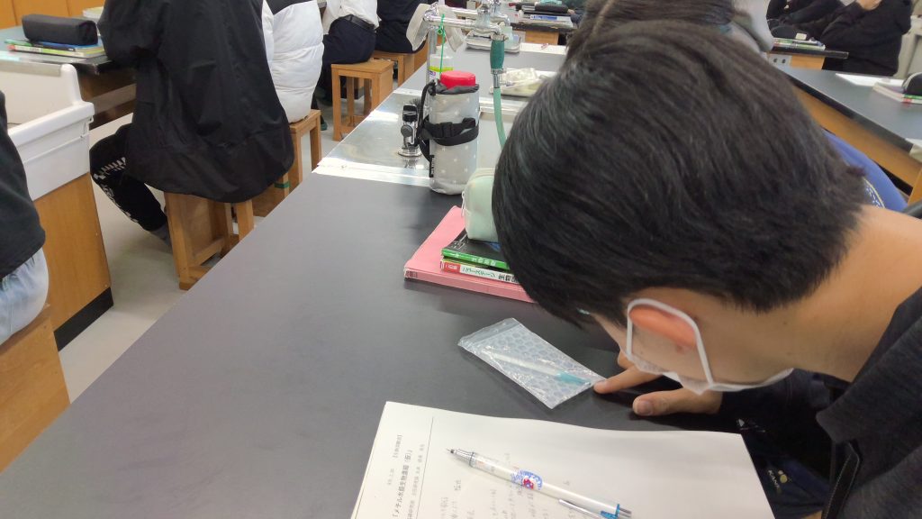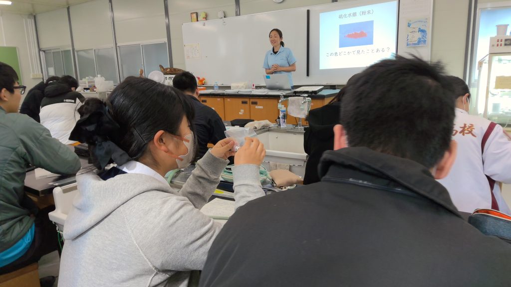 また、有機水銀には多くの種類があり、必ずしもすべてが有害ではないことや、教科書や参考書の記述にも誤りや不十分な表現がある場合があることから、暗記に頼らず「なぜ?」と考える科学的姿勢の大切さについてもお話しくださいました。実際に水銀や硫化水銀を観察する体験もあり、理解を深める貴重な機会となりました。