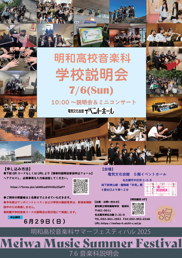申し込み方法などの詳細は、以下の音楽科説明会案内をご覧ください。